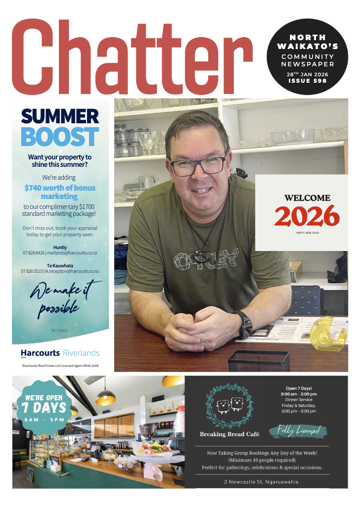 As the new owners of the Chatter News we look forward to continuing the great work of Jim and Karen but also adding to the publication through our 20 years experience with another community newspaper in the Waikato.